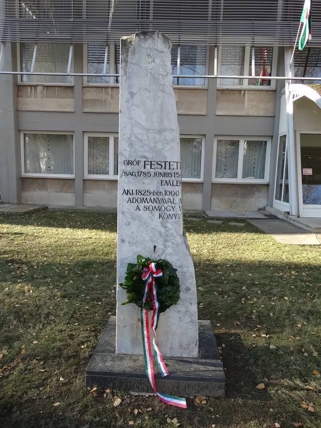 Mecénásai közt tudhatjuk a kezdetek kezdetén Festetics Lászlót és Somssich Pált is. A könyvtár előtt található emlékmű pedig méltó mementója Festetics gróf egy nagylelkű felajánlásnak.